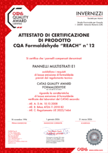 E1 CATAS: per garantire in modo ancor più puntuale l’utilizzatore, i pannelli multistrati e truciolari hanno conseguito, rispettivamente dal 2001 e dal 2000, la certificazione CATAS per il ridotto rilascio di formaldeide.